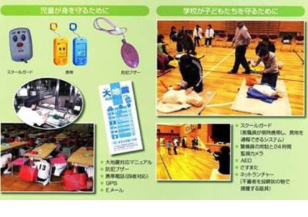 保護者との円滑な連絡をとるために日常的にアプリを利用していますが、突発的な事件や災害時の連絡にも役立 てています。 さらに、学校内外には児童が安心して学校生活が送れるよう、様々なセキュリティ・システムが設置されていま す。まず、建物周辺の防犯カメラは、24時間不審者の侵入を監視しています。また、教職員は校内のどの場所から でも異常を通報できるスクールガードを常時携帯しています。警察に直接連絡できるシステムも設置しており、そ れらのすべてが子どもたちの安全を見守っています。