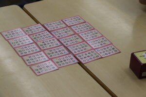1年生 たのしくてもう一かいやりたくなりました。校ちょう先生がよむときにメロディーが上手でびっくりしました。おうちでかるたをするときは、ばらばらにしてやっているけど、ならべるパターンがあるのがおもしろかったです。おうちでもやりたくなりました。こんど2年生になってもやりたいです。 |