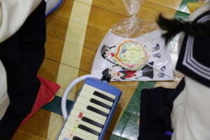 1年生は入学して間もないころに校内を案内してもらったり、運動会のダンスを一緒に踊ったりとたくさんお世話になった2年生へ向けて、歌のプレゼントをしました。